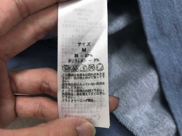 サイズはMで着丈59cm、身幅51cm、袖丈46cm です。
