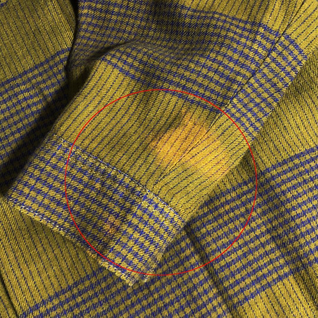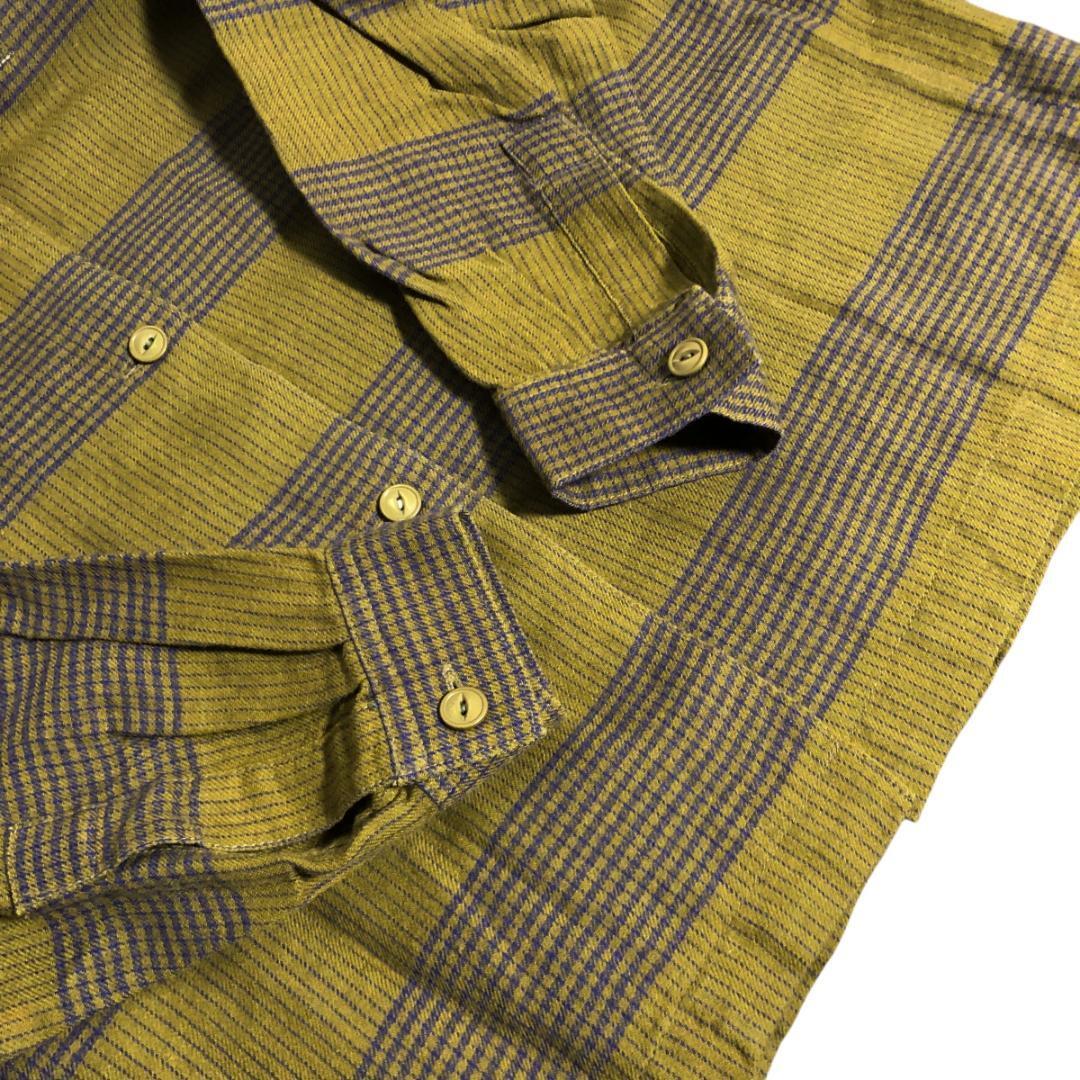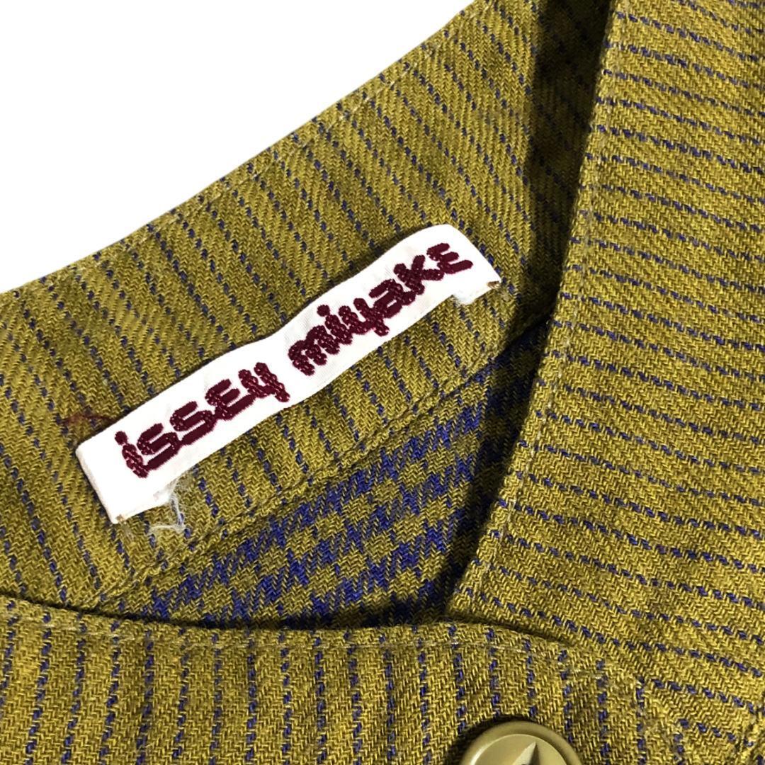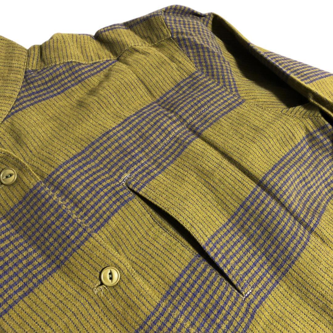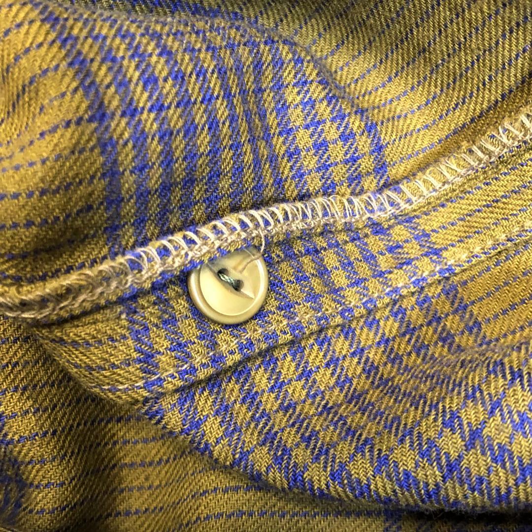 70s ISSEY MIYAKE イッセイミヤケ 初期タグ スタンドカラー シャツ チェック 長袖 カーキ 青 アーカイブ オーバーサイズ レディース M6