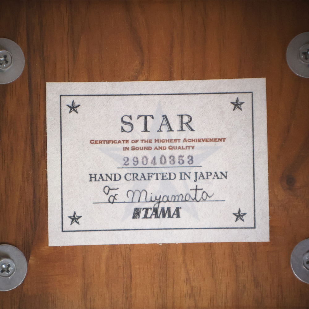 心に突き刺さるような芯のある硬質な音像と上質な甘い響き。存在感がありながらも主張しすぎることのない上品なボリューム感。そして、早いパッセージでのフレージングを多用するようなプレイでも、あくまでドラムサウンドの美しさを観客に訴えるような \“心地よい響き\”を奏でるのが、このTAMA STAR Reserveの第三弾\“ウォルナット/ブビンガ\”モデルです。
