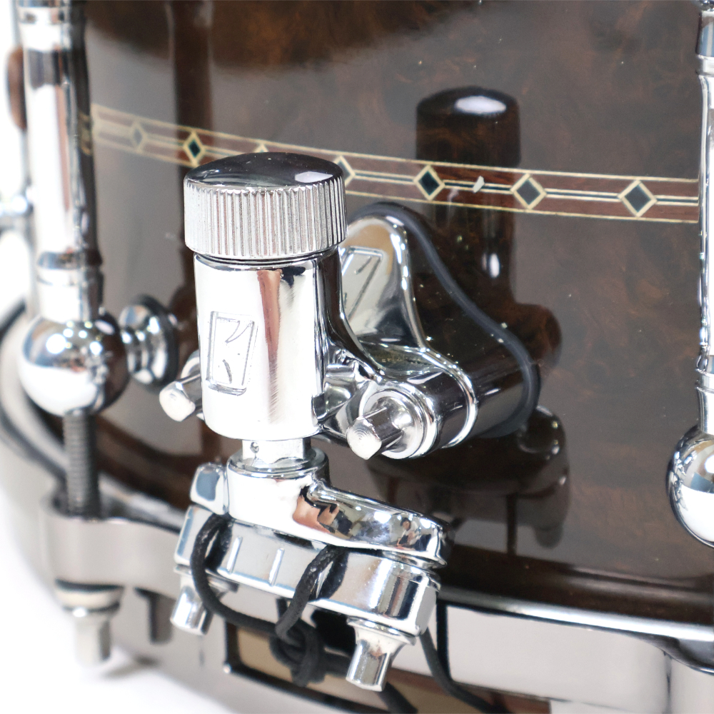 その上品な美しい響きの源泉は何と言っても、ウォルナットとブビンガを組み合わせたハイブリッドシェルにあります。シェル内面からエッジの頂点にあたる部分に4plyのウォルナットをあてがうことでふくよかで甘い響きを獲得。さらにウォルナットの外側には硬質で中低音が響くブビンガを、内側にはSTAR Mapleと同じサウンド・フォーカス・リングを採用することで、芯のはっきりとした音像と落ち着いた中低音の響きを実現しました。