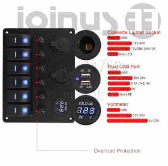 DC 12V/24V マリン ボート キャラバン LED回路 防水スイッチパネル