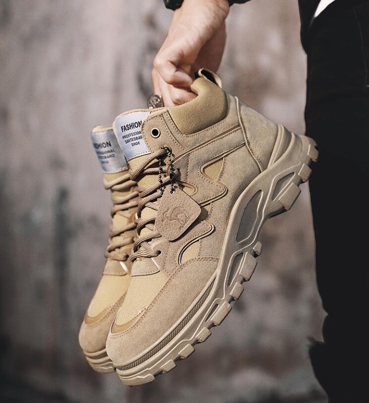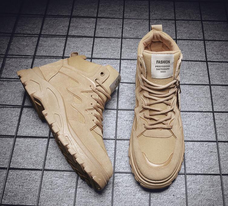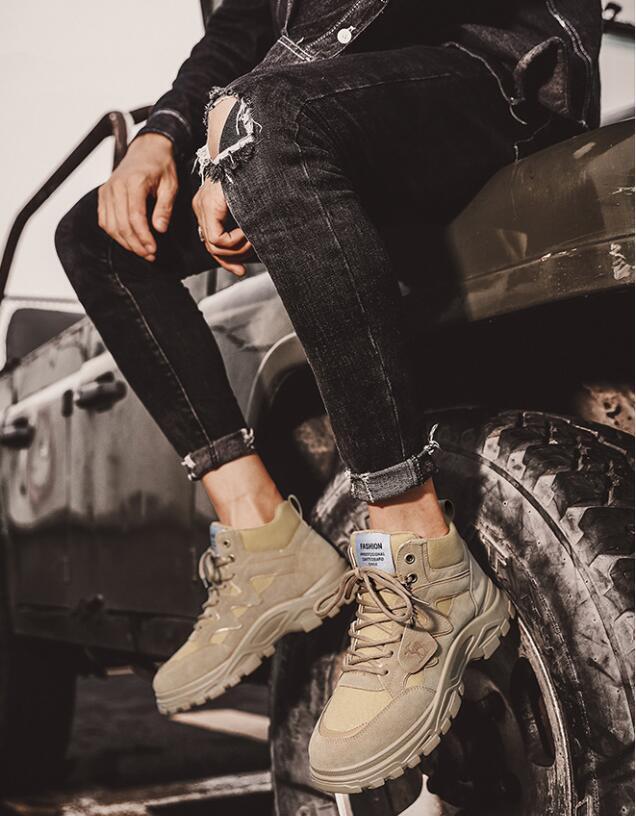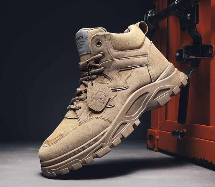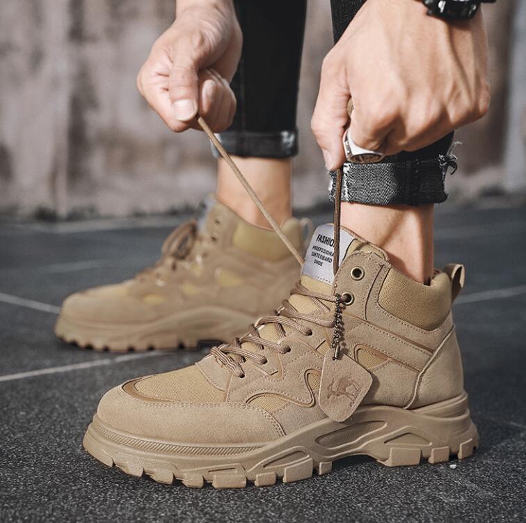 上質メンズブーツ ワークブーツ 靴 メンズ アウトドア シューズ ハイカット ショートブーツ 歩きやすい 四季兼用 春秋 カーキ25.5cm
