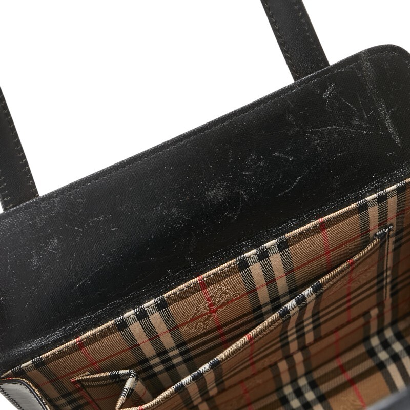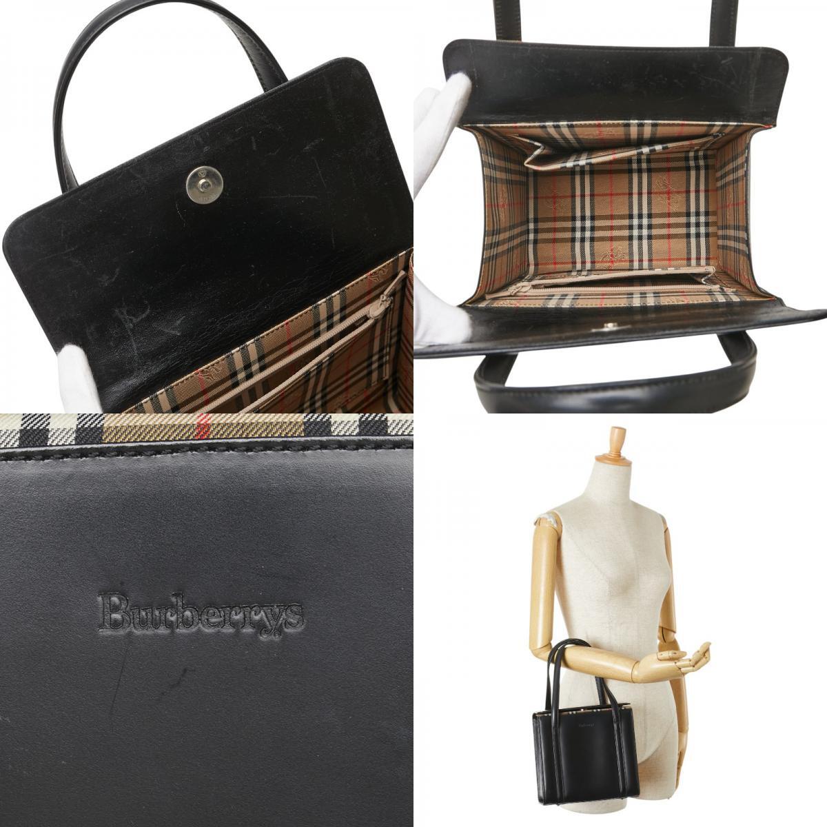 バーバリー ノバチェック シャドーホース スクエア ハンドバッグ ブラック レザー レディース BURBERRY 【中古】