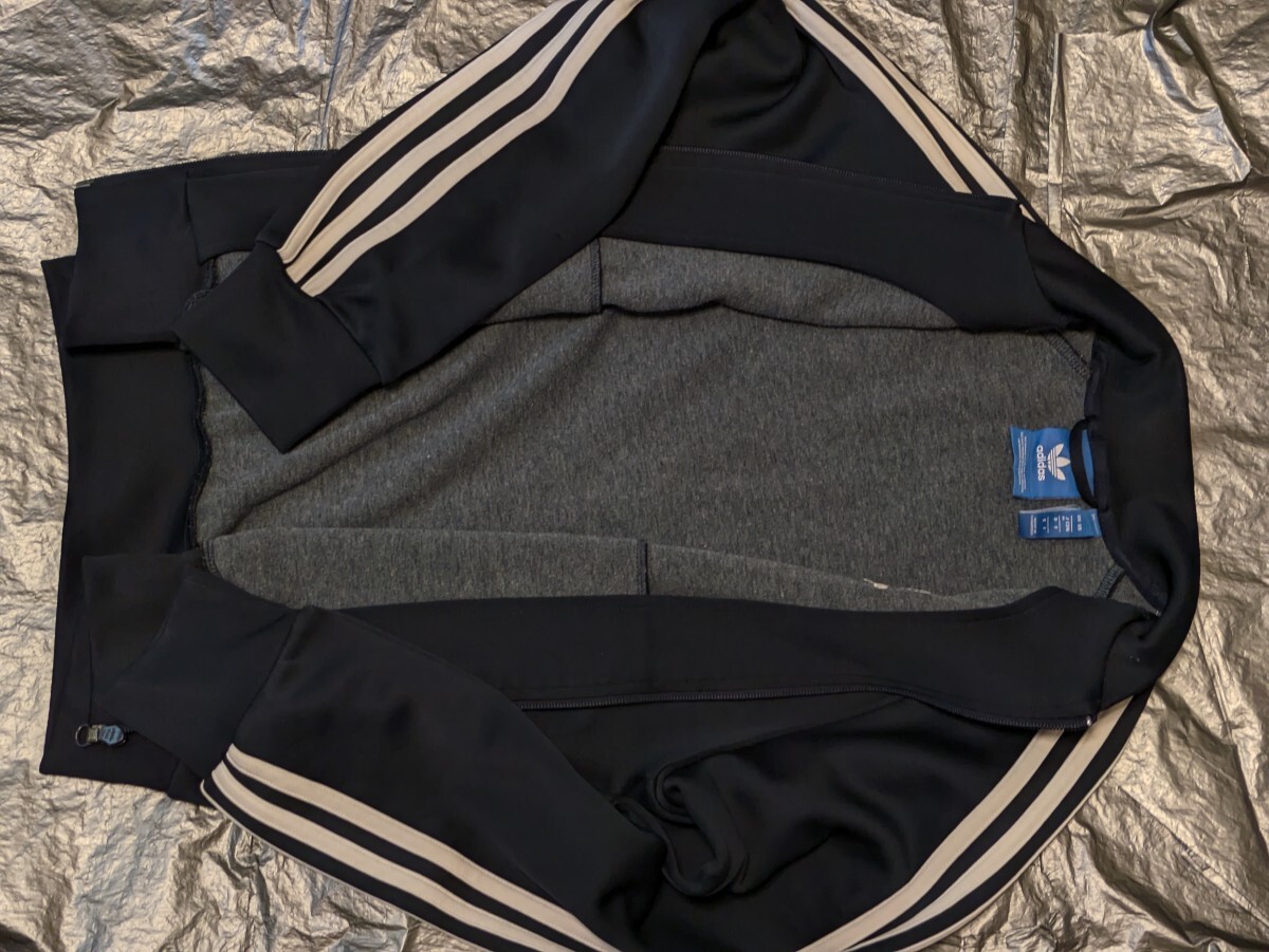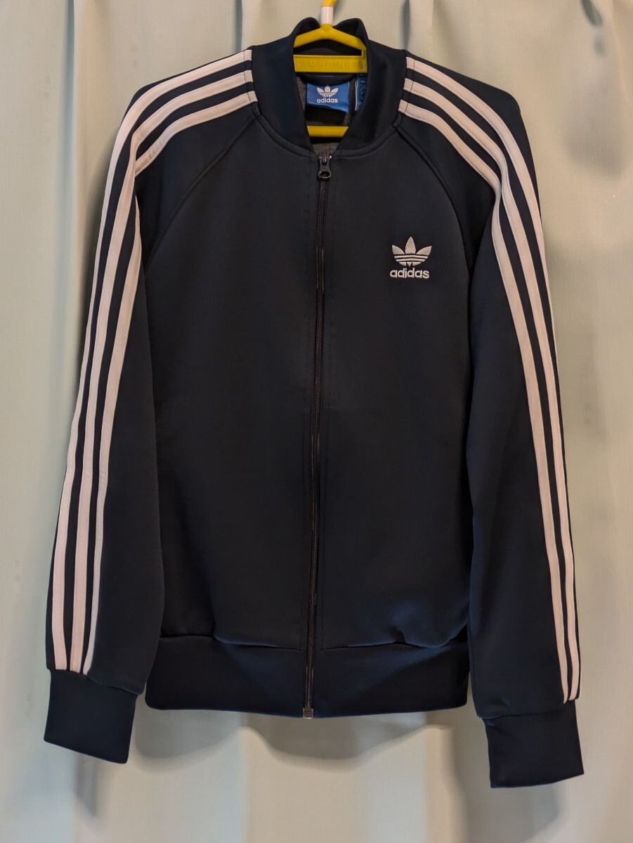 アディダスジャージ トラックジャケットネイビー 襟なし adidas Originals AY7061 Mサイズ:丈62身幅51 古着なのでそれなりの使用感毛玉袖ひきつれ(写真10など)ありますので神経質は避けてくだい。 ATP型 SST ヴィンテージ 青タグ adidas スーパースター トラックトップ トラックジャケット ネイビー ホワイト 紺 白 バイカラー アディダス AY7061 ジャージ ジャケット ヴィンテージ 古着女子 アディダスオリジナルス adidas Originals 091837