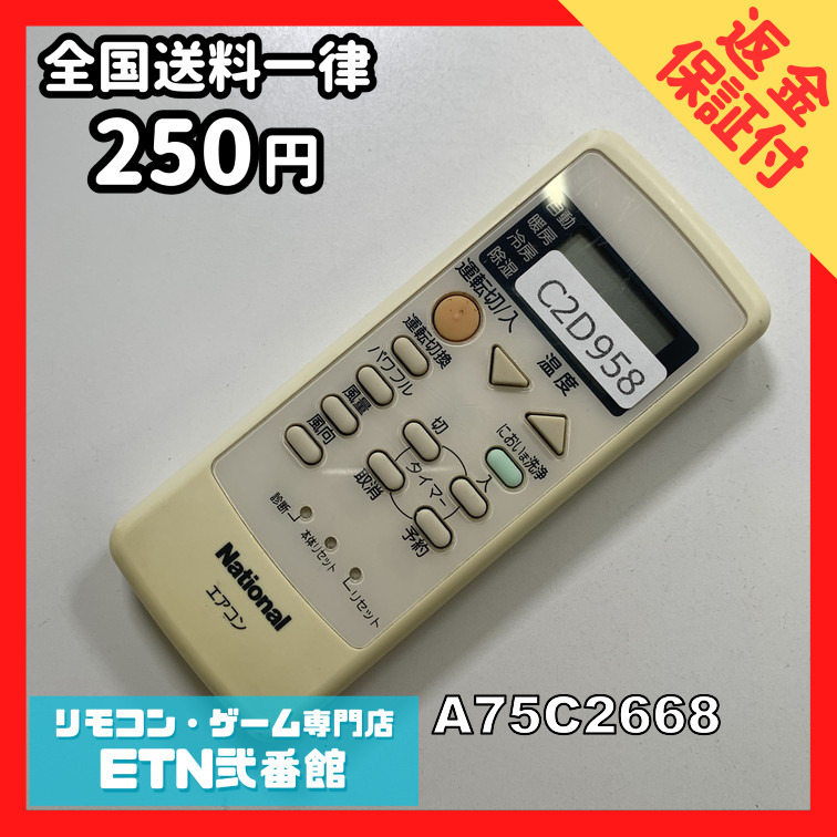 C2D958 【送料250円】エアコン リモコン / National ナショナル A75C2668 冷房 暖房 動作確認済み★即発送★