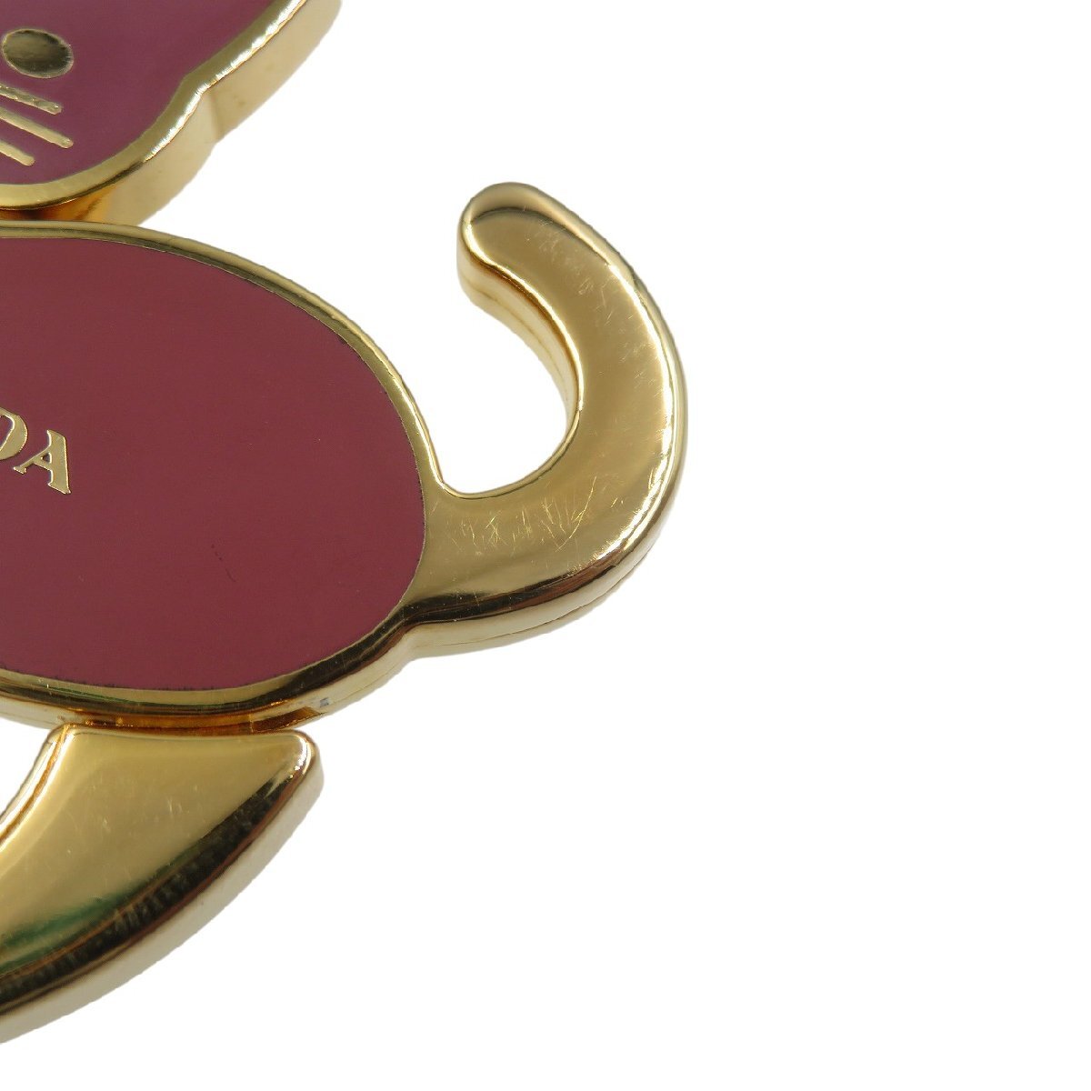 美品 プラダ 1AP433 キャット 猫 メタル ゴールド ピンク キーホルダー キーリング 1356 PRADA