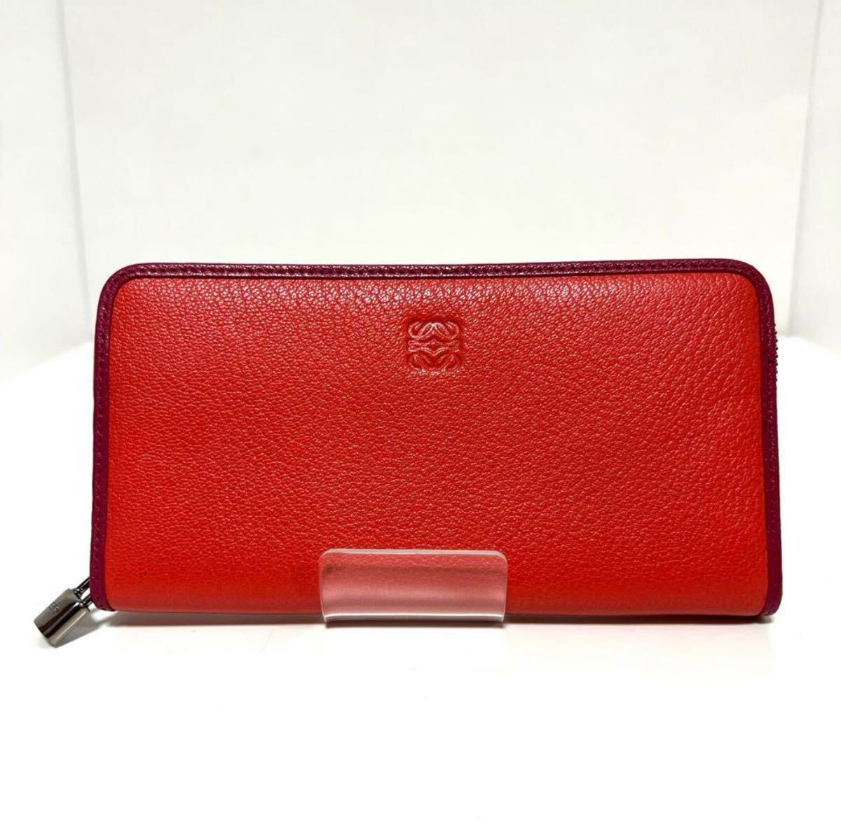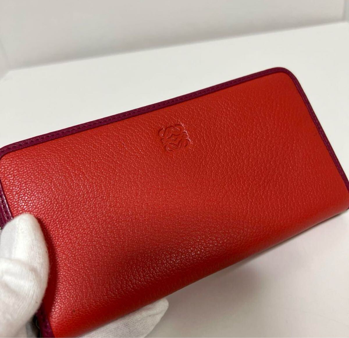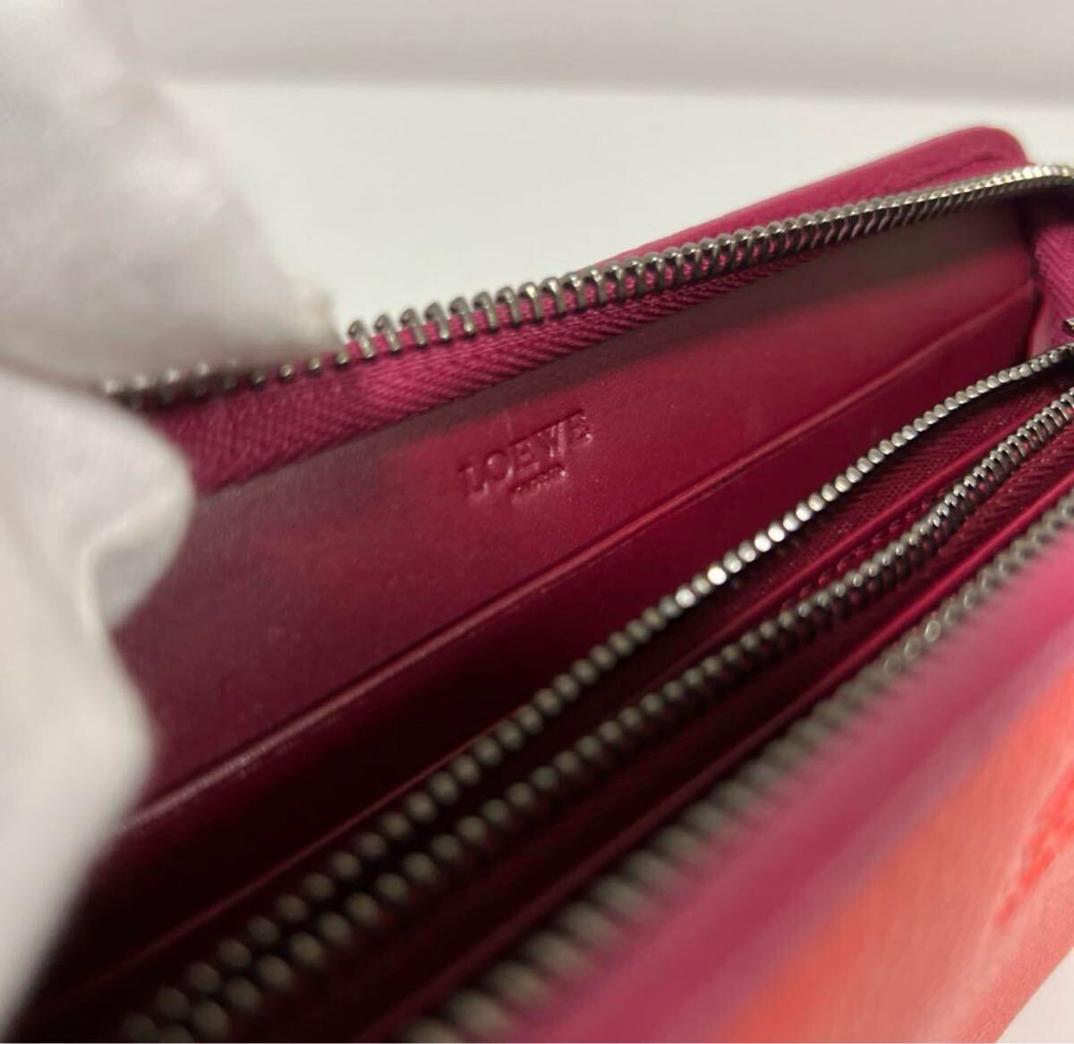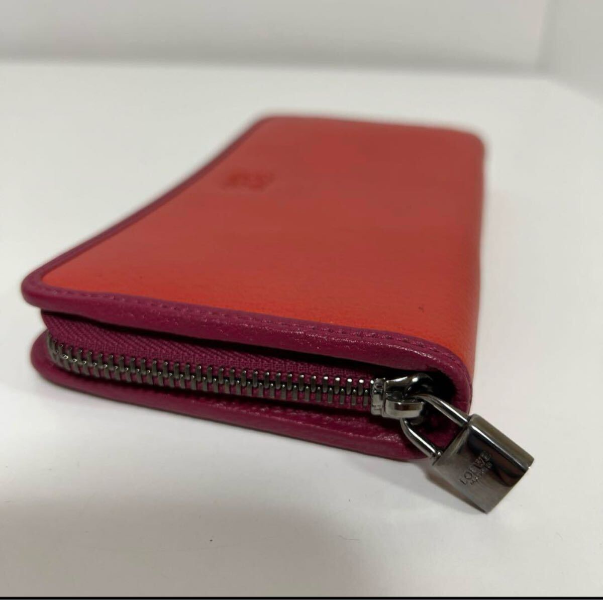 【訳あり】LOEWE ロエベ ラウンドファスナー アナグラム レザー 長財布 コーラル 中古