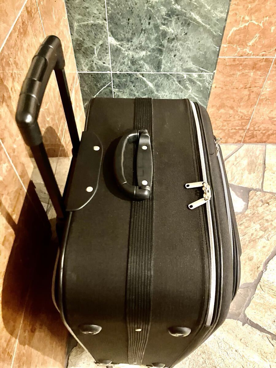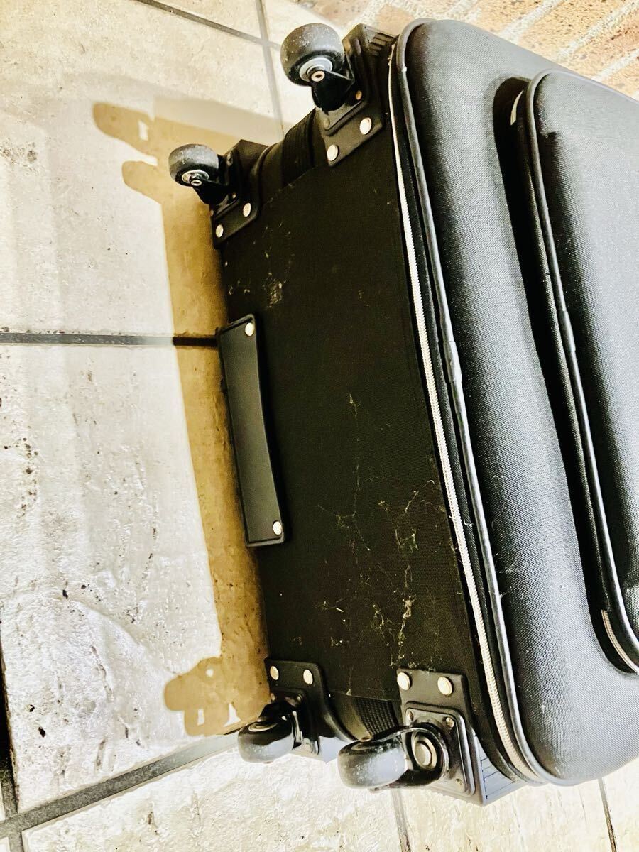 ブラックナイロンキャリーケース、4輪で移動がスムーズ。