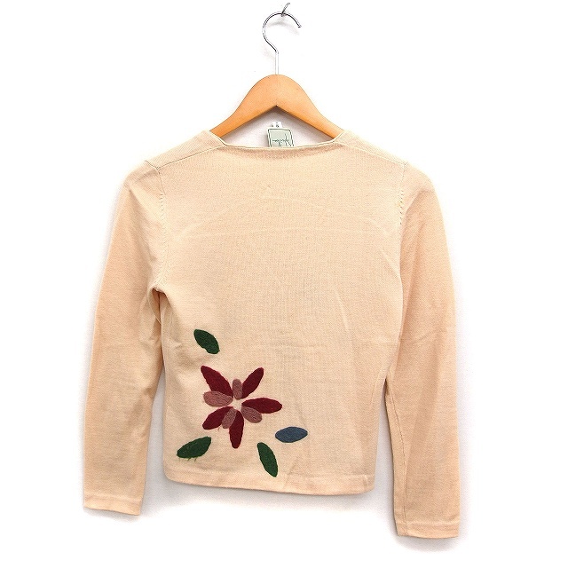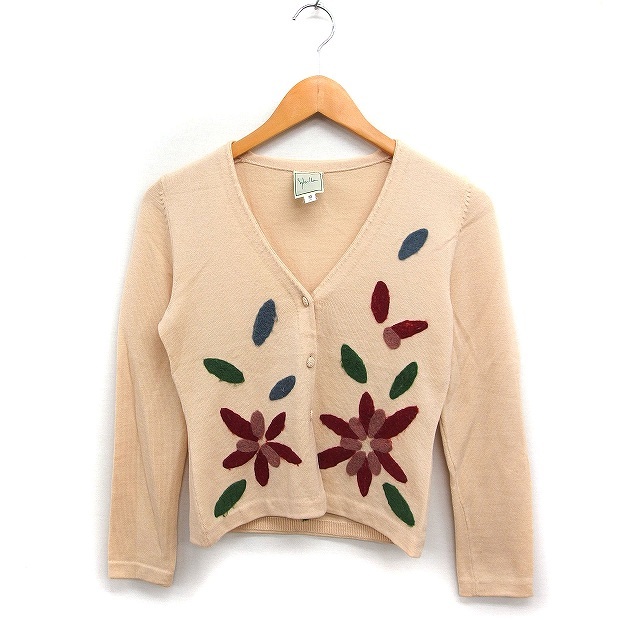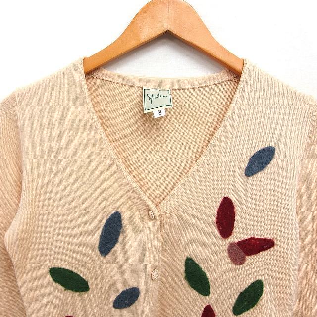 シビラ SYBILLA 刺繍 Vネック カーディガン ウール ニット M ベージュ /FT35 レディース