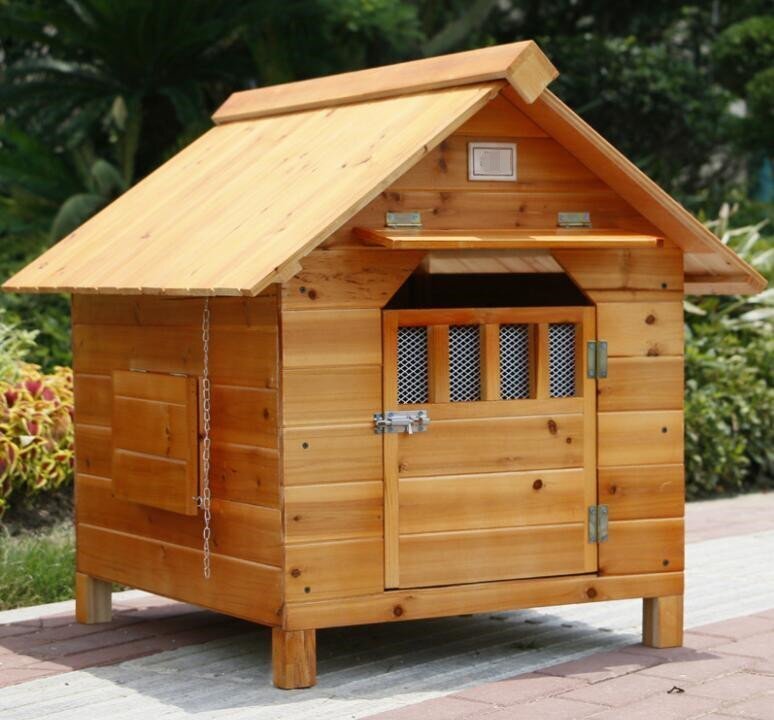 屋外用 木製 天然木 犬小屋 ペットハウス ドッグハウス 犬舎 三角屋根 脚付き 小型犬 中型犬 通気性 組み立て 夏は涼しく冬は暖かい