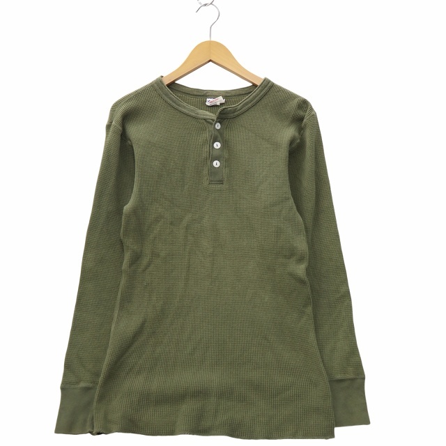 ワラワラスポーツ WALLA WALLA SPORT ヘンリーネック 長袖 ワッフル カットソー S KHAKI カーキ メンズ