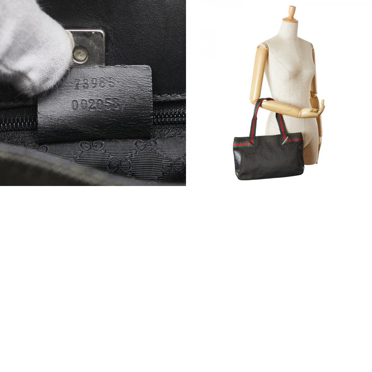 グッチ シェリーライン トートバッグ ハンドバッグ 73983 ブラック デニム レザー レディース GUCCI 【中古】