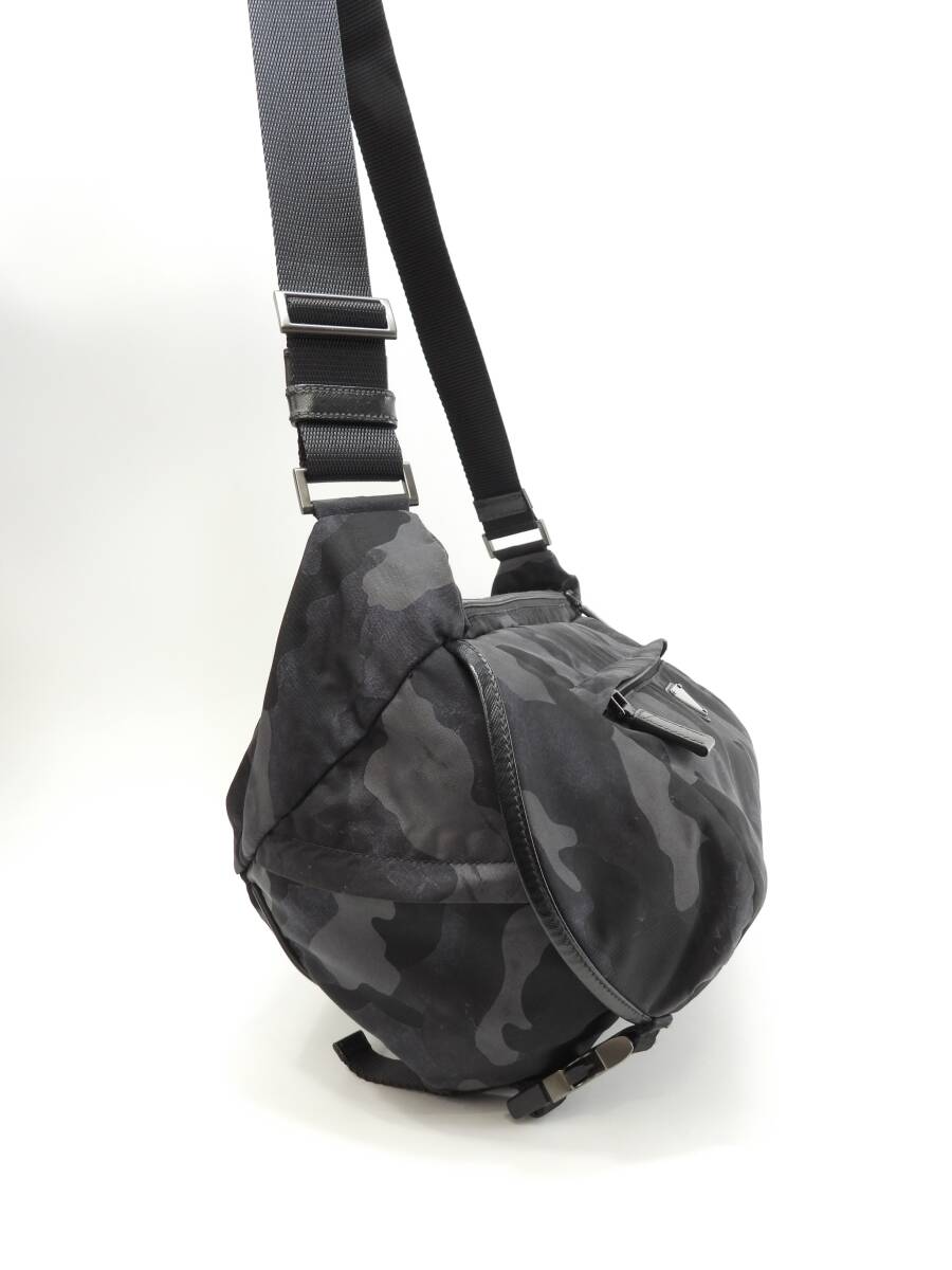プラダ クロスボディバッグ大 カモフラ テスート黒灰紺 斜掛ショルダーバッグ 美品@56