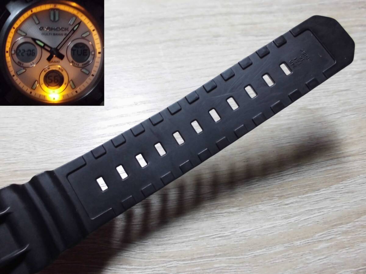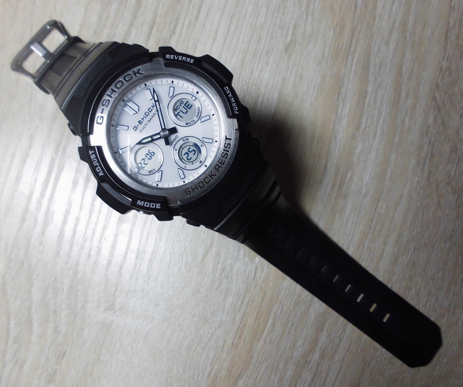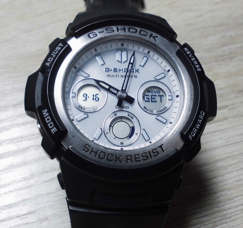 ホワイトの文字板が爽やかな印象を与えます。 中古です。写真の時計だけの出品です。1枚目の写真を見てもらうとわかると思いますが、GET表示されていますので電波受信OKです。写真撮影時はバッテリーがフル充電の状態でライトが点灯し動作中です。中古なのでコキズはありますが良い状態です。 |