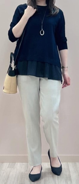 ニットでもきちんと感がしっかりとあってオフィスにも好印象。