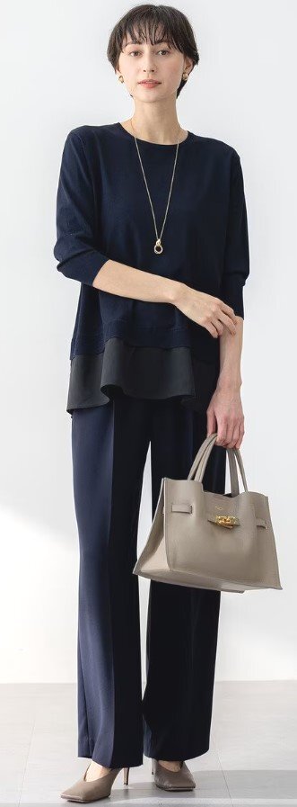 シックなネイビーにブラックのシアー素材を合わせた大人っぽい配色なので、
