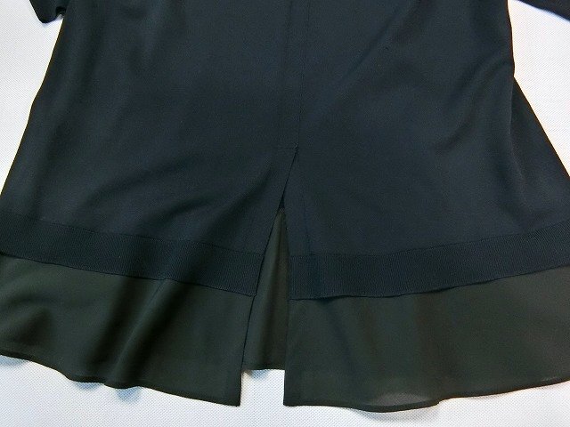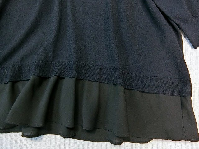 シアー感のあるシャツ素材をヘムにドッキングしたレイヤードデザインとなっています。