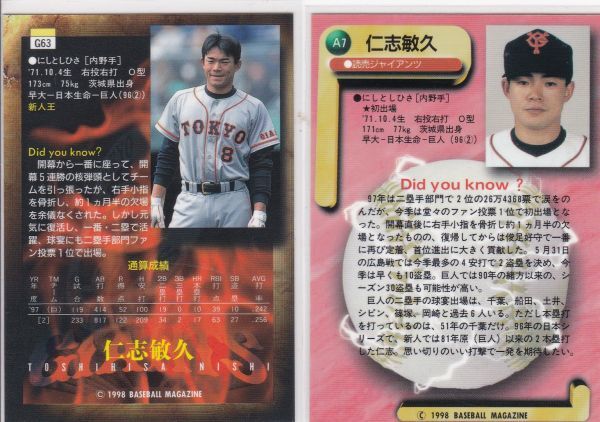 ●1998BBM/巨人 【仁志 敏久】 通常版 G63+オールスター A7 2種セット R