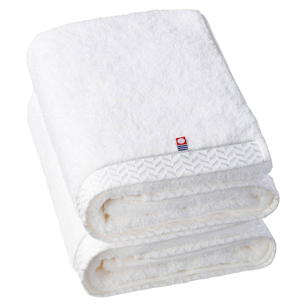 【 商品仕様 】■ 今治 バスタオル 2枚セット プレミアム 高級 ロングパイル 甘撚り 撚糸 ホワイト ( 白 ) ■ サイズ: 約60x120cm (1枚当たり) 約375g ■ 素材: 綿 ( コットン ) 100%