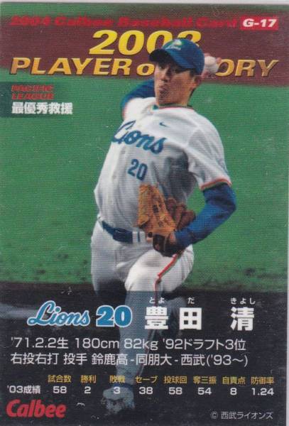 ●2004カルビー[豊田 清] プレ版:金箔押サインパラ PLAYER of GLORY:西武 R3