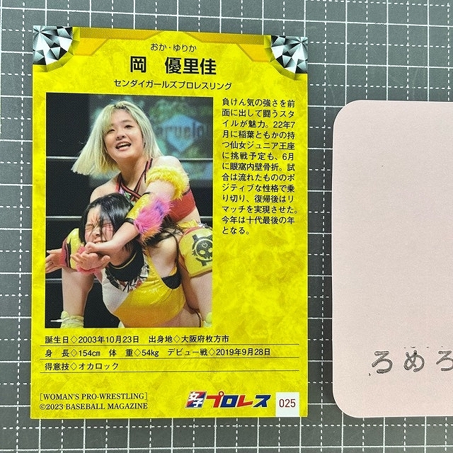 ◇2023年BBM♯025岡優里佳/Yurika Oka/センダイガールズ/仙女【女子プロレストレーディングカード】