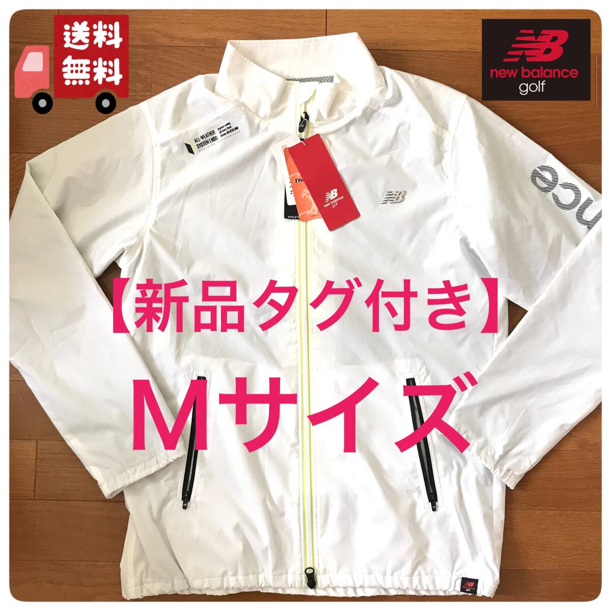 【新品タグ付】new balance golf ニューバランス ゴルフ 白 ウィンドブレーカー Mサイズ ビッグロゴ