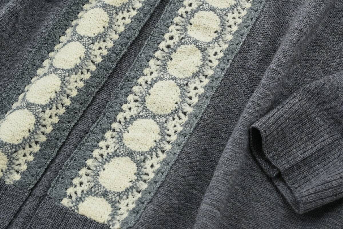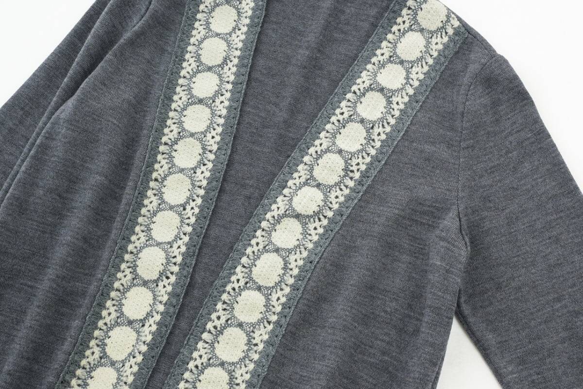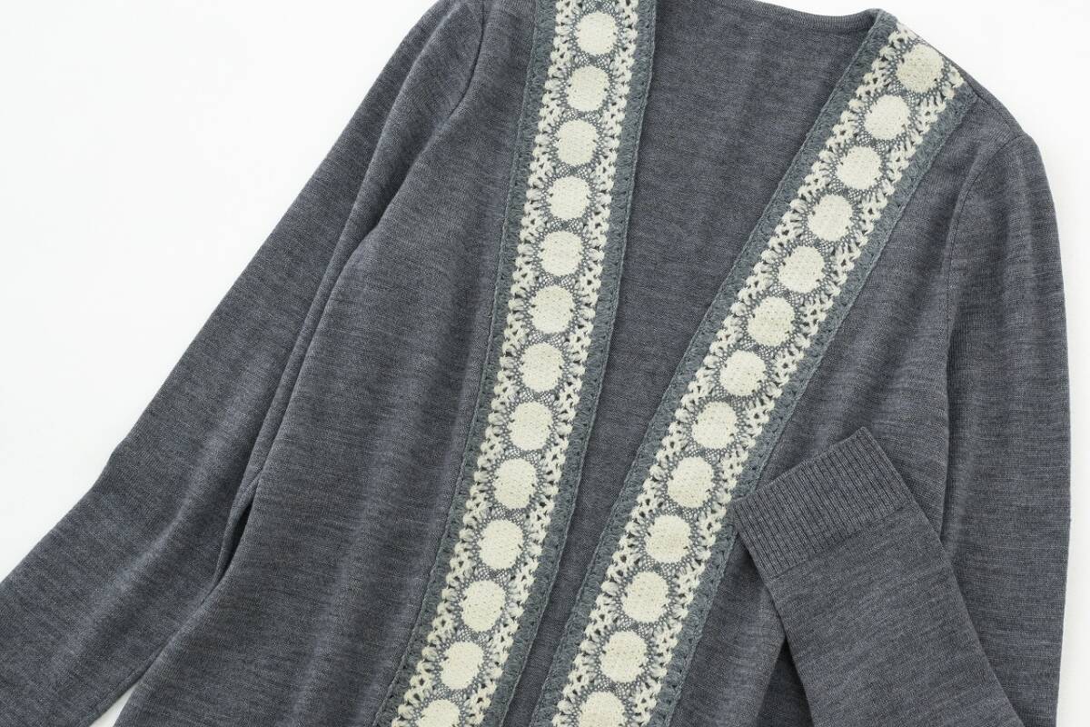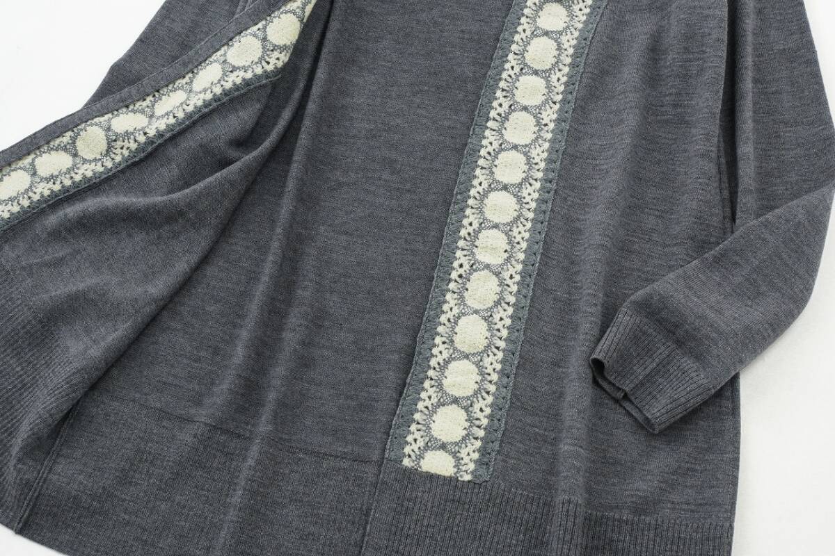 前立て部分には、上品なニットレースのトリムが施され、さりげない華やかさをプラス。