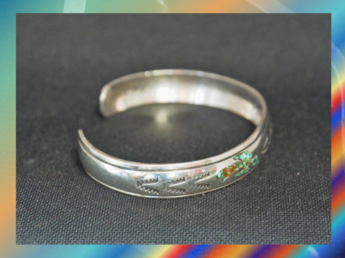 ※インディアンジュエリーはハンドメイド作品ですので、工場製品のような仕上がりではなく、手作りであるが故の歪みやハンマー等の打痕が残って居る事もあります。画像でご確認の上ご入札ください。