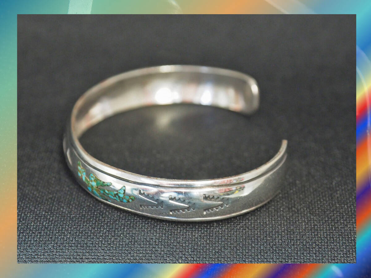 ※インディアンジュエリーの偽物が出回っていますが、インディアンジュエリーと名乗れるのはアメリカの法律では【アメリカインディアン作家による作品】のみで、この作品は本物のインディアンジュエリーです。
