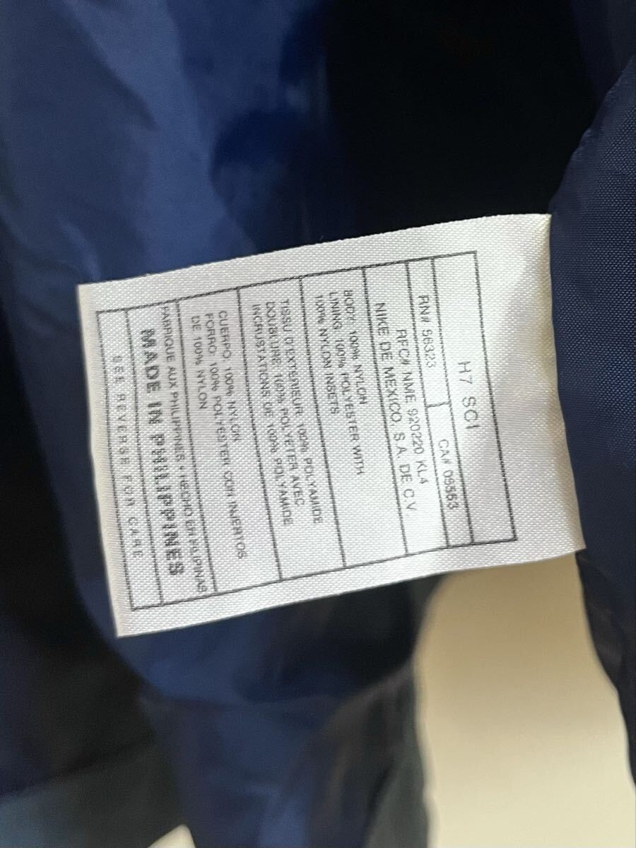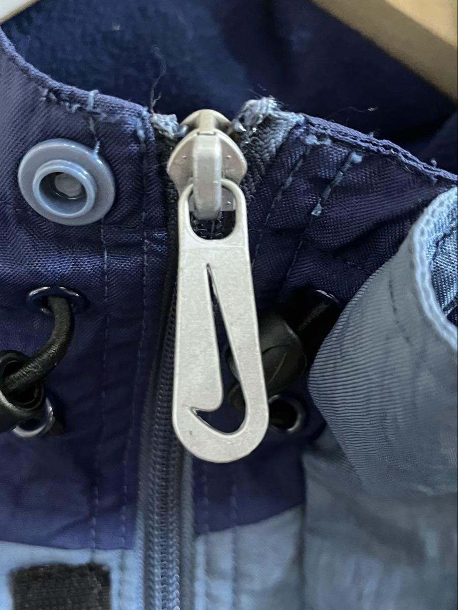 ビンテージのナイキフーディー。シェルはバイカラーのナイロン素材、裏地はフリースです。
