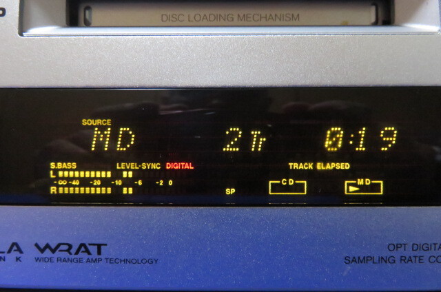 ★MDは写真の様に読込み再生するのですが、読込認識時間が通常よりかなり遅い感じがします。又DISK ERRORと表示されたら2,3度DISKを出し入れすると直るMDもありました。又MDによっては読込しない時に、一時メインスイッチを切ってから再度入れると読込する確率が高い場合もありました。主にMDを使用する人には推奨しませんので入札しないで下さい。CDプレイヤーとアンプとしては正常なのでその様に使用する人に推奨します。
