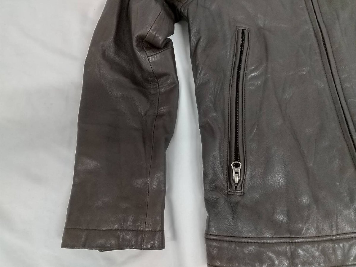 BACK NUMBER バックナンバー ジャケット 山羊革 メンズ サイズ S チャコール 茶 レザー ライダース でございます。 画像に映っているものが全てでございます。 ※撮影時の光源の影響や、PCの画面設定の関係で 色味が違って見える場合がございます。 【サイズ】 着丈(背面中央から裾まで):58cm 着幅(脇から脇):45cm 肩幅:41cm ※素人採寸の為、多少誤差が生じる場合がございます。 あくまで目安とお考え下さいませ。 シワ、多少のスレ等使用感がございます。 その他詳細については画像と説明文をご確認いただき、入札をご検討くださいませ。 現状渡しとなります。 未確認箇所の不具合を理由とする返品・値引き交渉 には 応じかねますのでご理解ご了承頂いた上でのご入札を 宜しくお願い致します。 パソコンやスマートフォン等、ご覧頂く環境により 色味等、実物と若干の誤差が生じる場合がございます。 スムーズなお取引を行う為、その旨ご理解の上ご入札下 さいませ。 この商品は、中古品での出品になりますので 神経質な方、完璧な状態をお求めの方は入札をお控え 下さい。 | ||||||||||||||||||