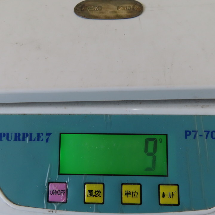 | 商品説明 | ご覧頂きありがとうございます。下記欄をご一読下さい ------------------------------------------------- 古いため変色あり 計量は9g キッチンスケールで計量しました。誤差はおゆるしください。 発送サイズ 佐川急便 サイズ 60 → 最下部に料金表あり ●万が一記載や画像にない破損が発生した場合、現状をそのままに佐川急便へご連絡ください。 現状確認後、対応させていただきます。 ご落札額より1個の値段を出してご返金致します。 送料は対象外です。 上記の対応をしていない場合は、返送いただいても保険対象外となり、当方では対応ができないので、よろしくお願い致します。 【その他】 ・すべて1点物です。説明文/画像を確認して頂き、ノークレーム・ノーリターンでお願いします ・リサイクル品が多いので神経質な方の入札は御遠慮下さい ・対応時間は「平日午前9時~午後4時です ・午後4時以降は対応不可となります ・土/日/祝は、お休みとさせて頂いております ・質問返答/発送/取引連絡が休み明けになります ・落札日より3日以内にご入金連絡がない場合、キャンセルとさせていただきます。 ・まとめて取引依頼、同梱、梱包追加、サイズ変更発送方法のがございません。 ・離島の方は事前にお申し出ください。申し出の無いままお支払いを頂きますと不足の中継料金を後程ご請求させていただきます。 | |
