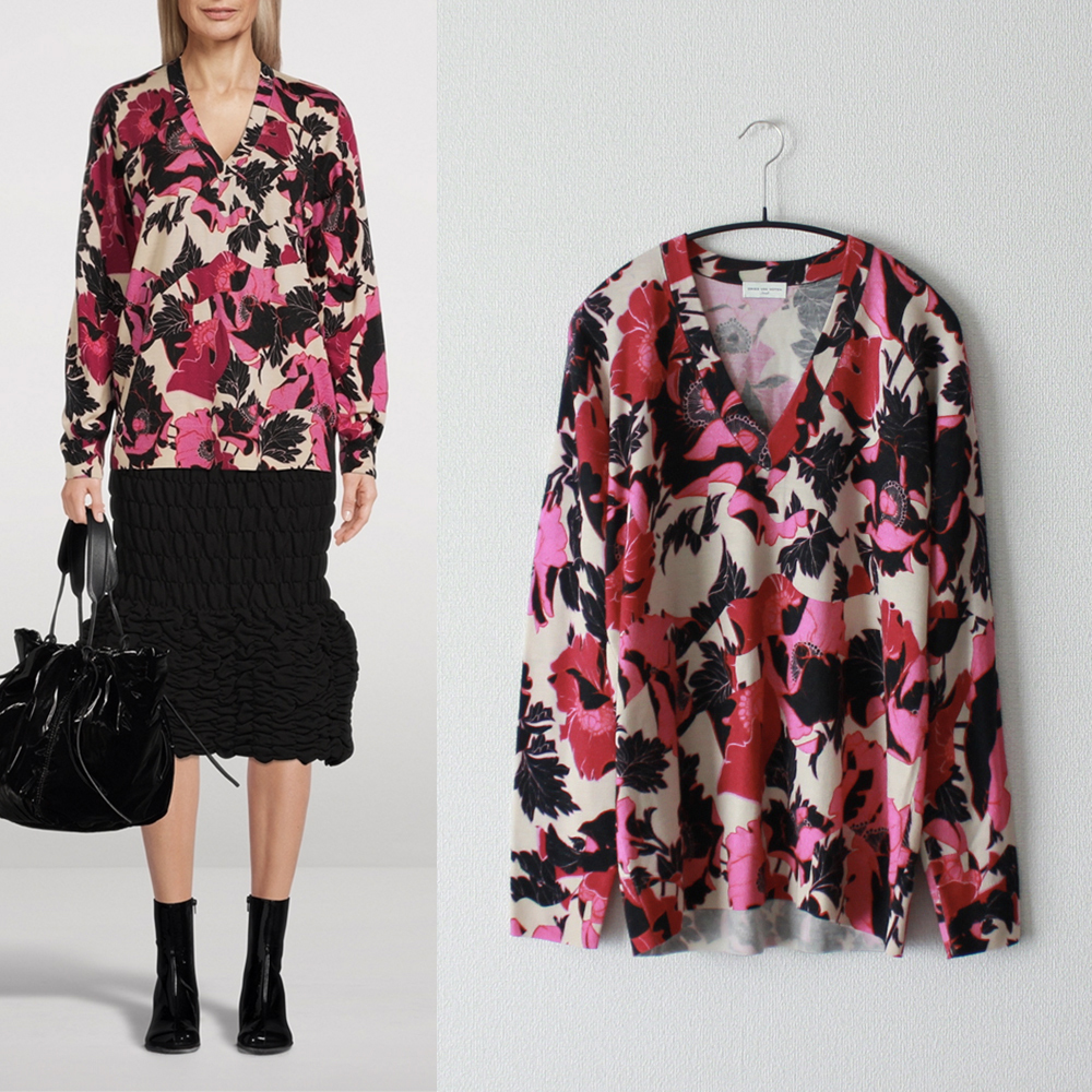 DRIES VAN NOTEN/ドリス/22SS/Vネックフラワーハイゲージニット