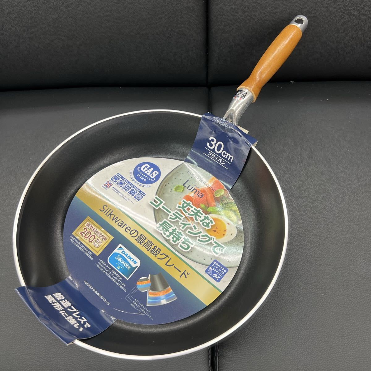 ★新品未使用送料込お買得★北陸アルミ最高級グレード内面加工 フライパン30cm大型フライパン木柄ガス火用