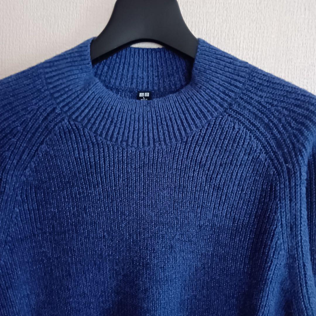 UNIQLOのMサイズの青いラグランスリーブ長袖ニットセーター