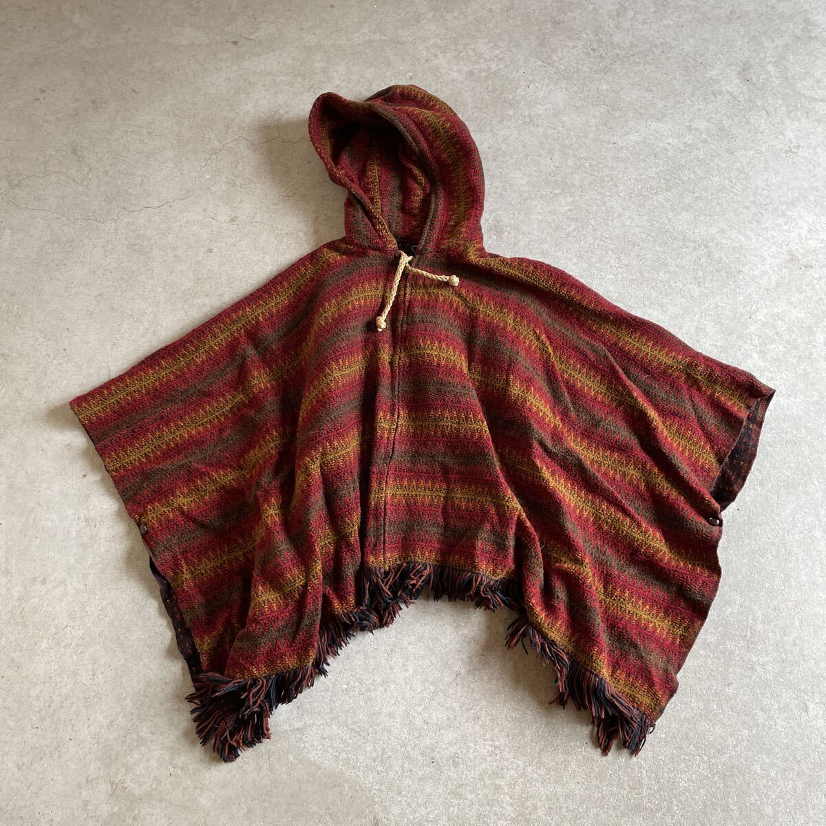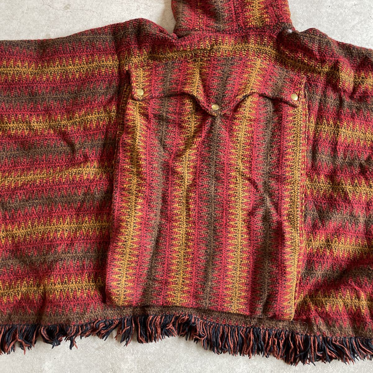 ビンテージ 大きなバックポケット ポンチョ 4 ヴィンテージ 古着 ケープ マント フード メンズ レディース ラグマット フリンジ ニット