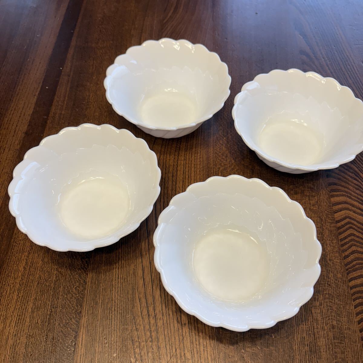 食器棚で長期保存。フランス製、arcopalの刻印があります。直径13cm、高さ4.5cm。4個組。
