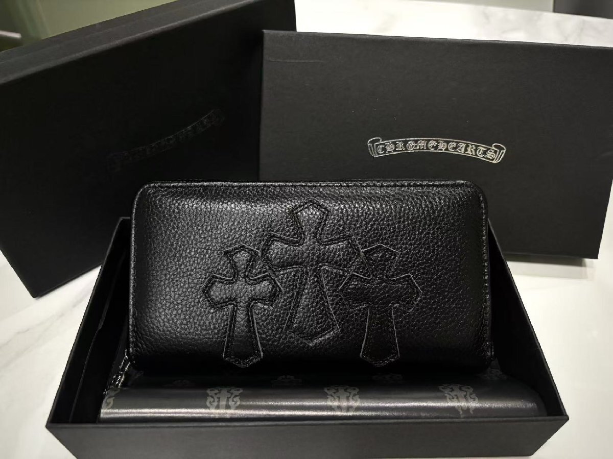 クロムハーツ Chrome Hearts クラシックロングウォレット 男女兼用 三つのクロスデザイン トレンド & 個性的