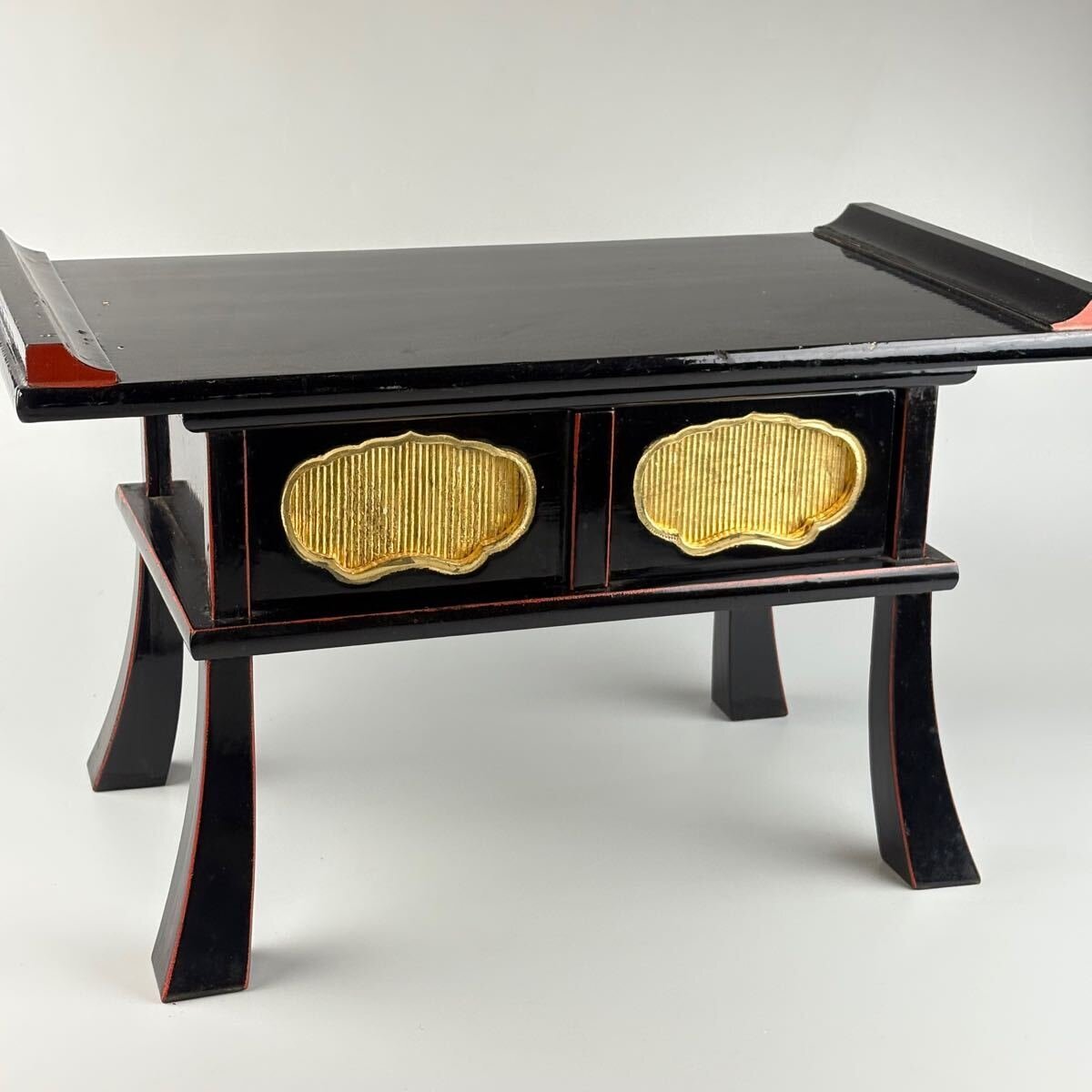 仏教美術 木製 経机 経卓 寺院 仏具 仏壇 前机 前卓 漆塗 金具打 仏教 金彩 伝統工芸