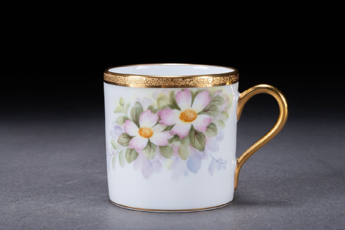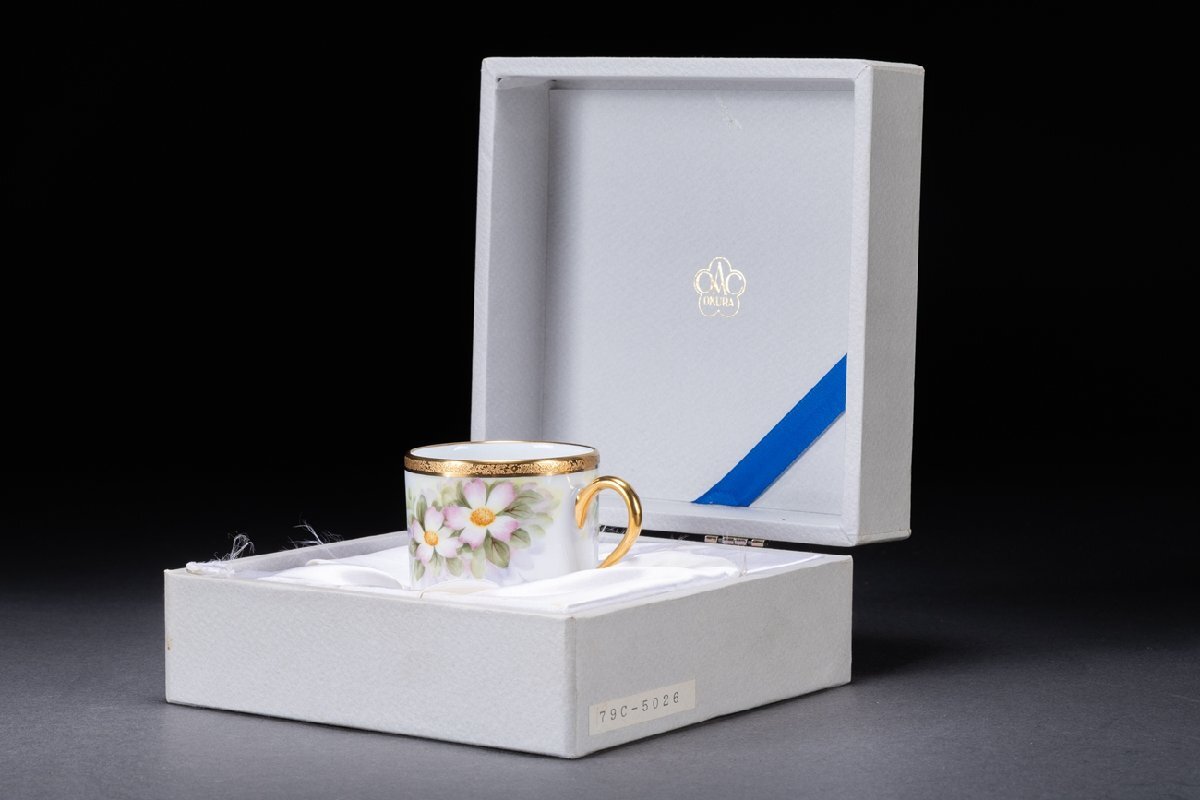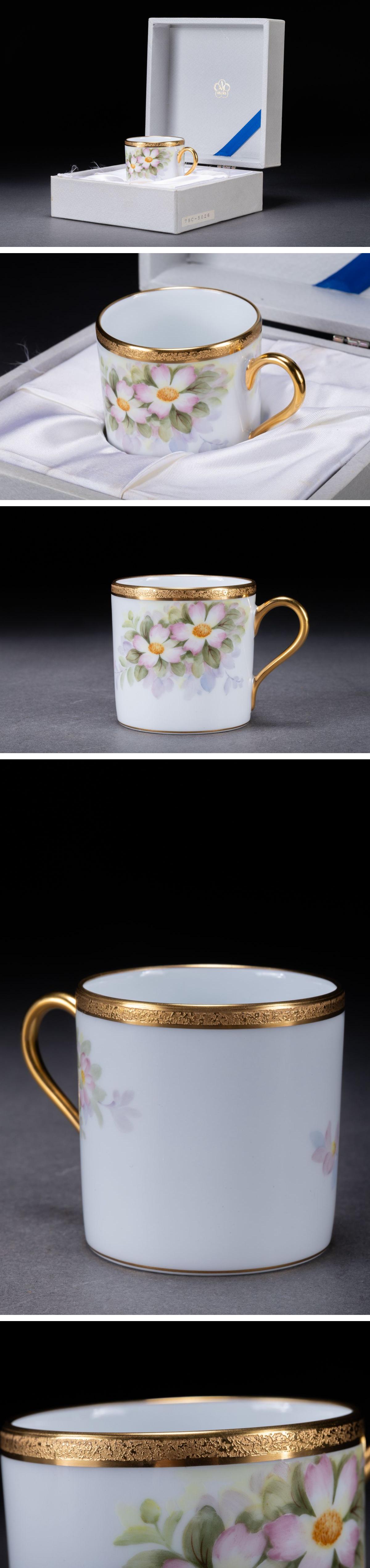 【華】時代舊藏 時代物 大倉陶苑 花卉紋金彩コーヒーカップ 共箱 時代物 古美術 骨董品A25070133-PQ-VQ