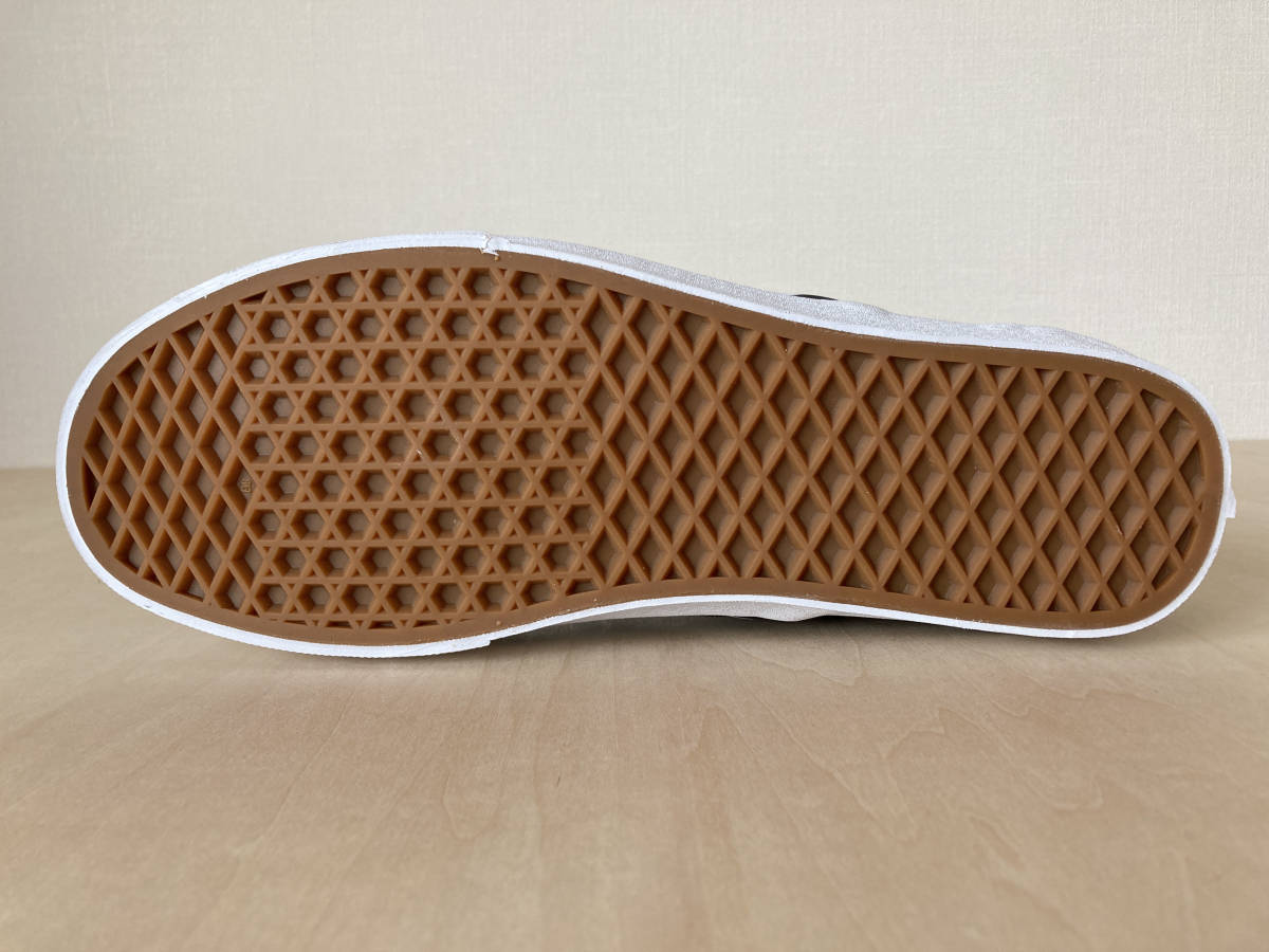 一部商品につき、若干のボンドのはみ出し、ヒールパッチのズレ等がある場合がございますが、ヴァルカナイズド製法と呼ばれる 、ゴムを加熱させアッパーとソール圧着させる製造上の特性です。不良品ではございません。