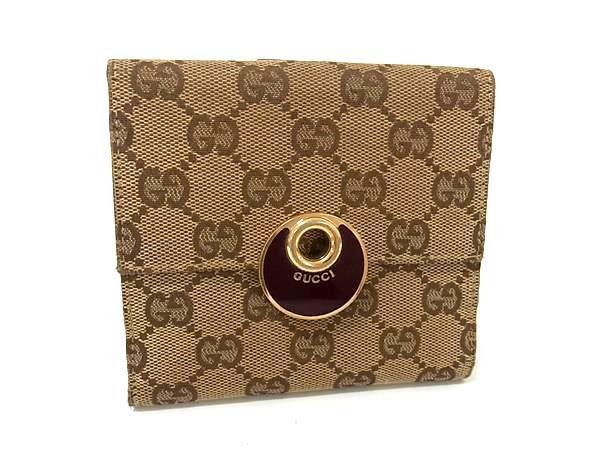 1円 GUCCI グッチ 120932 GG柄 GGキャンバス×レザー 二つ折り 財布 ウォレット 札入れ 小銭入れ レディース ブラウン系 BP4909