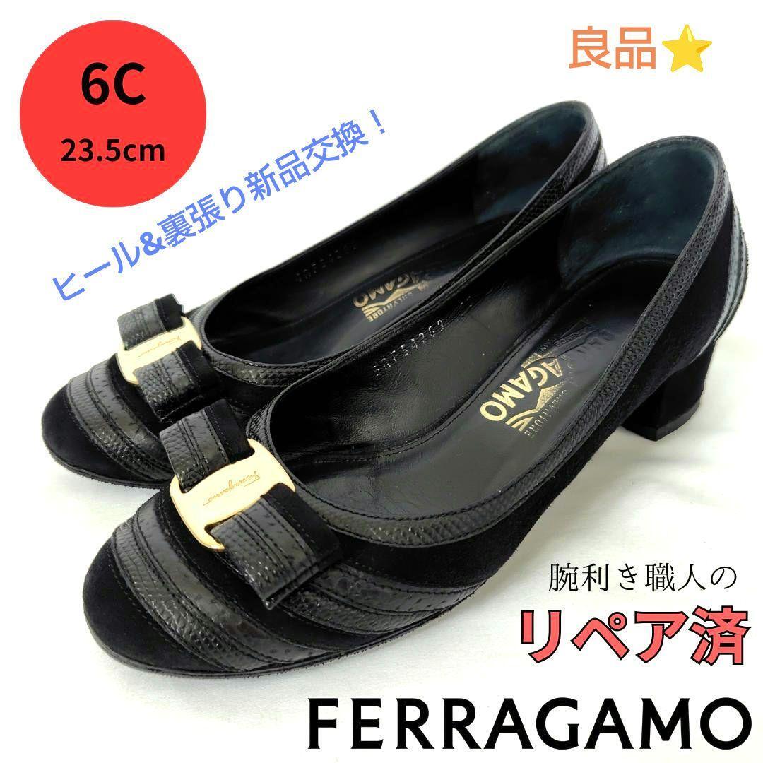 #リペア済み #修理済み #ヒール新品 #クリーニング #フォーマル #卒業式 #入学式#パンプス#ブランド#ハイブランド#ブラック#フェラガモ#Ferragamo#レディースシューズ#レザーパンプス#23.5cm#フェラガモパンプス#おしゃれ#シンプルパンプス#スエードパンプス#ヴァラパンプス