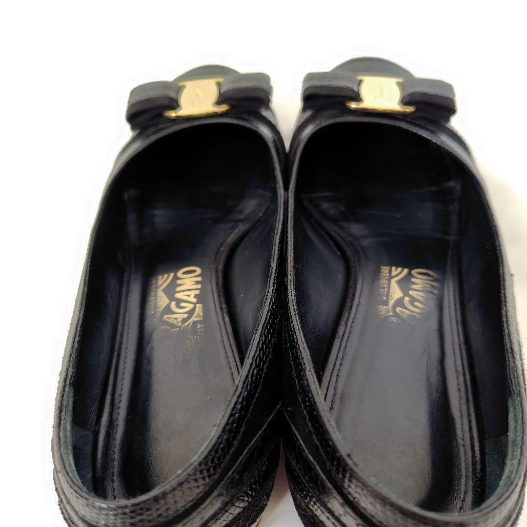 良品フェラガモ【Ferragamo】おしゃれヴァラ パンプス 黒