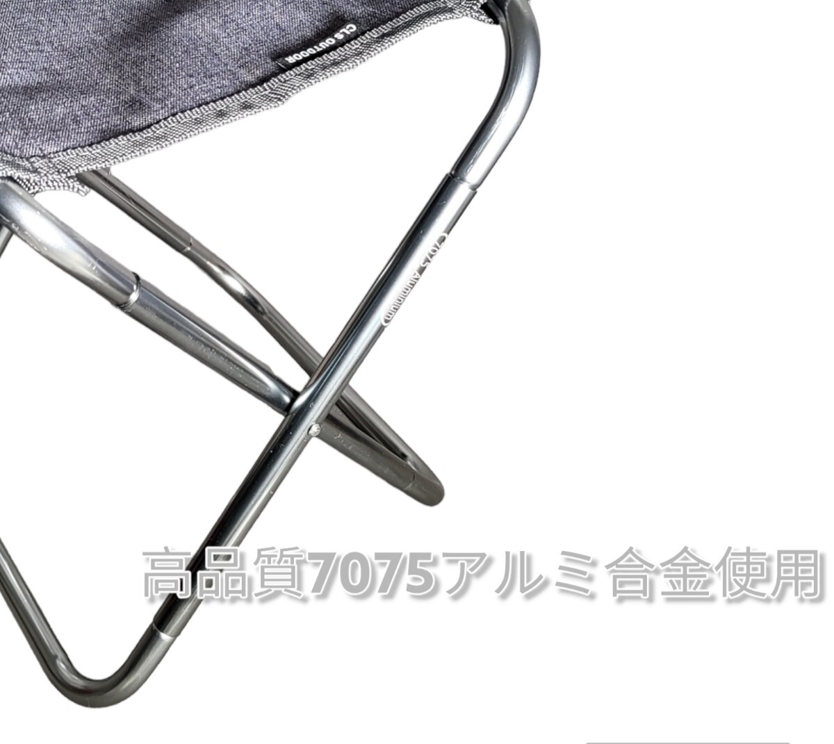 フレームは強度の高い航空7075アルミ合金製で、静止耐荷重は約80kgになります。また座面は破りにくい丈夫なオックスフォード生地を採用し、耐久性と通気性が抜群で、座り心地がとても良いです。