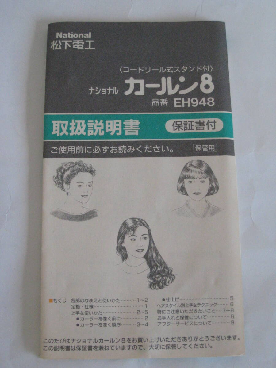 National カールン8 EH948ーZ ホットカーラー8本入りです☆大小各4つのカーラーが付いています。コンパクトサイズでコードリール式なので収納の際は場所をとらず便利です。1993年製。動作確認済み。