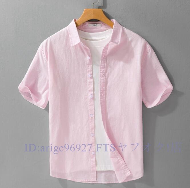 ★新品夏半袖シャツ メンズ ビジネス 無地 ワイシャツカジュアルシャツ Tシャツ清涼感サマーお洒落心地良し 涼しい 紳士 ピンク 3XL