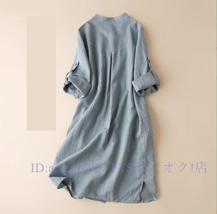 ★新品リネンワンピース ペチワンピース ロング 夏 ワンピース レディース 麻 vネック ゆったり 体型カバー M~2XL