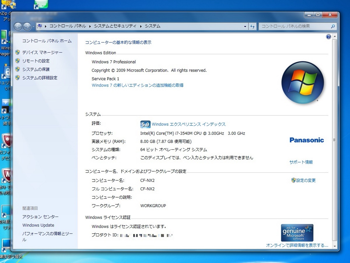 | Panasonic Let’s note NX2 CF-NX2BENBP/Core i7-3540M/8GBメモリ/HDD250GB/12.1TFT HD+(1600×900)/Windows7 Pro リカバリ領域有 #0919 | ||